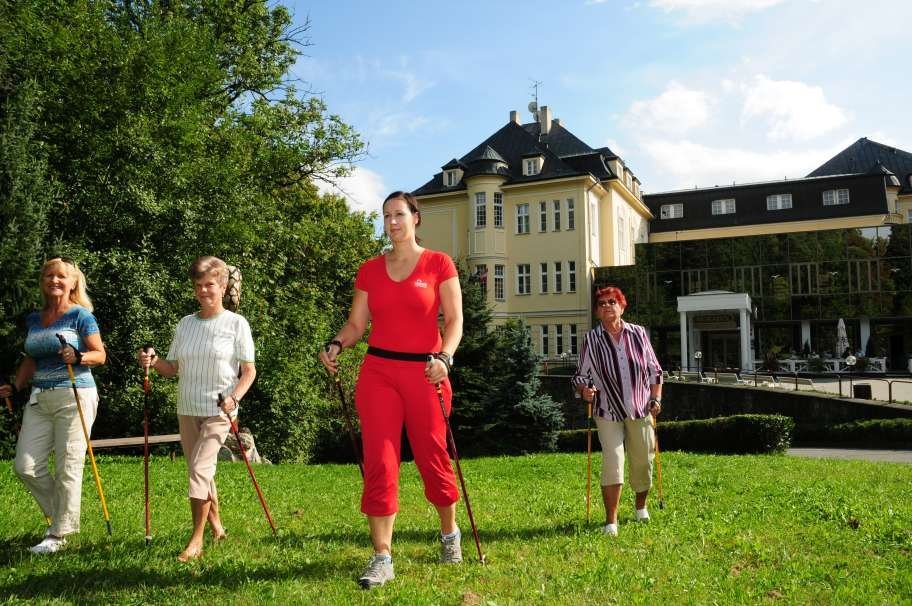Je pravda, že prostředí také pomáhá léčit. K procházkám doporučujeme rozlehlý lázeňský park, stezku kolem řeky Bečvy a okolní lesy. I když pro pacienty krátce po operacích nosných kloubů, kteří chodí ještě s francouzskými holemi, náš zvlněný terén není ideální, pro většinu ostatních pacientů, zvláště pro vertebropaty (pacienty s onemocněním páteře) je právě nerovný měkký terén v lese ideální.