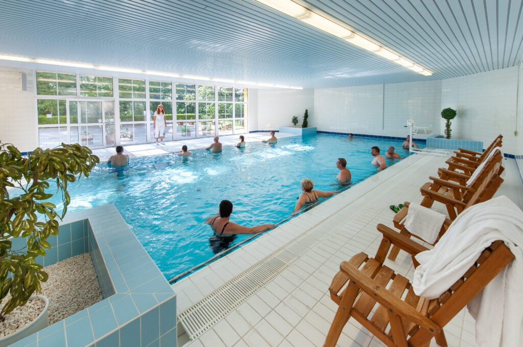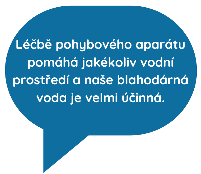 Léčbě pohybového aparátu pomáhá jakékoli vodní prostředí. Uvolňuje svalový tonus kolem páteře, kolem kloubů. Jakmile se uvolní svalové napětí, sníží se tah úponu šlachy, zlepší se kloubní hybnost. Pohybovému aparátu naše voda velmi pomáhá. I když koupelí mají méně často než pacienti s kardiovaskulárními chorobami, pouze 4x a nikoli 5x týdně, ale navíc mají 2x týdně cvičení v bazénu pod odborným vedením. Každý z nich si pak může dokoupit permanentku a chodit cvičit do bazénu častěji, individuálně, sám. Ale musí vědět, co má cvičit, aby si neublížil.